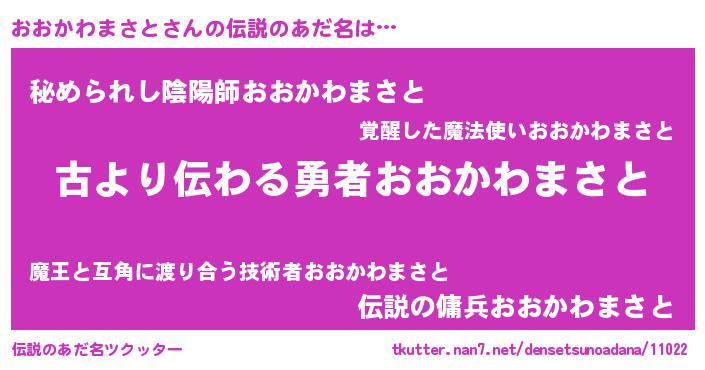 | 女子向けラノベタイトル風あだ名 | 『おおかわまさとの契約王妃』 |