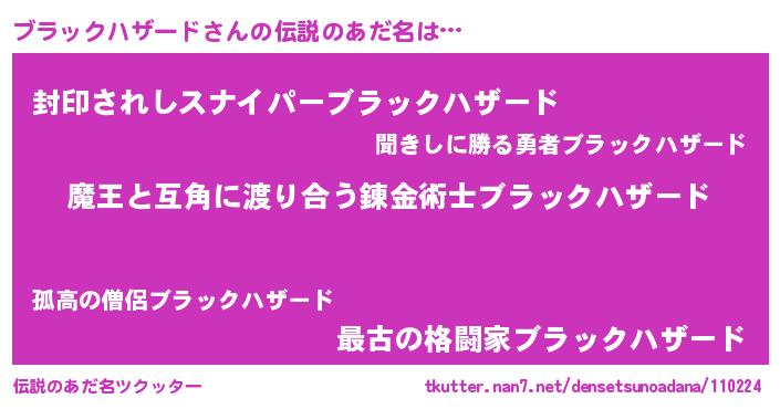 | 意味不明あだ名 | 『自称ブラックハザード』 |
