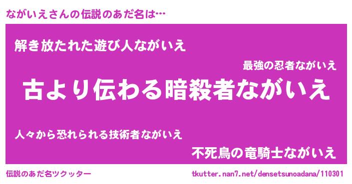 | 意味不明あだ名 | 『自称ながいえ』『永久保存ながいえ』 |