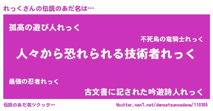 | 意味不明あだ名 | 『自称れっく』『眠気覚ましガムれっく味』 |