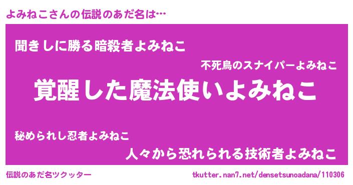 | ヘコむあだ名 | 『よみを』『よみねこ(爆)』『つくし』 |