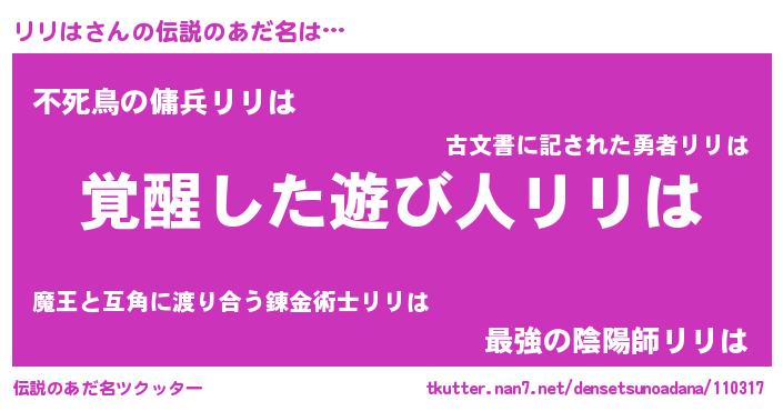 | ヒーロー風カッコイイあだ名 | 『究極戦士リリハ』『銀牙騎士リリ』 |