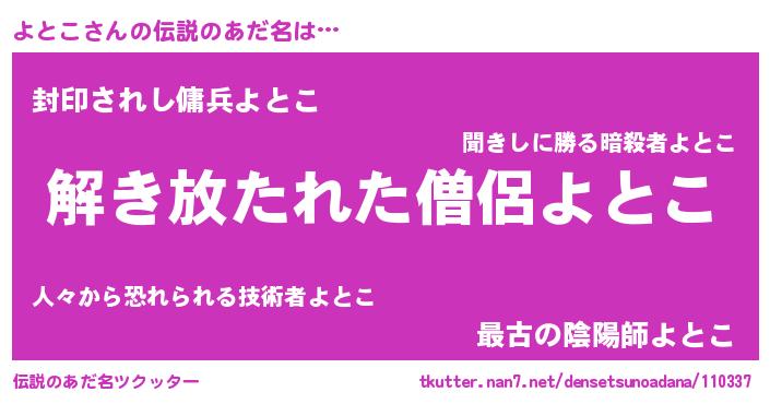 | ヒーロー風カッコイイあだ名 | 『銀牙騎士ヨト』『スーパーヨトコ』 |