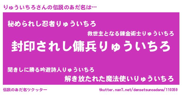 | 胡散臭い通販商品みたいなあだ名 | 『億万長者になれる水晶球…その名も「りゅういちろ」』 |