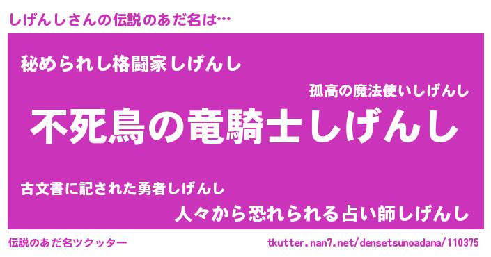 | 女子向けラノベタイトル風あだ名 | 『しげんし姫と円卓の騎士』 |