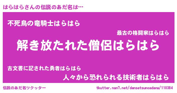 | ヒーロー風カッコイイあだ名 | 『魔戒騎士ハラ』『スーパーハラハラ』 |