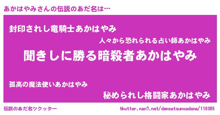 | ヘコむあだ名 | 『あかはやみ(笑)』『あかもー』 |