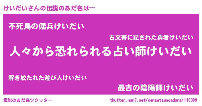 | ヒーロー風カッコイイあだ名 | 『友情の使者けいだい』『ネオケイダイ』 |