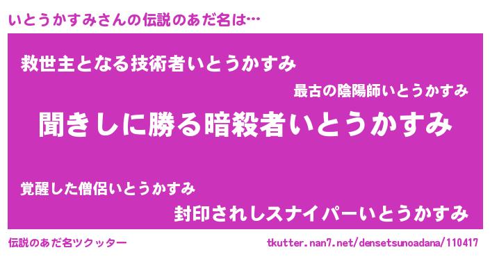 | 意味不明あだ名 | 『永久保存いとうかすみ』 |