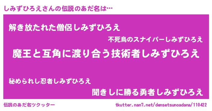 | ヘコむあだ名 | 『しみお』『しみずひろえ(爆)』 |