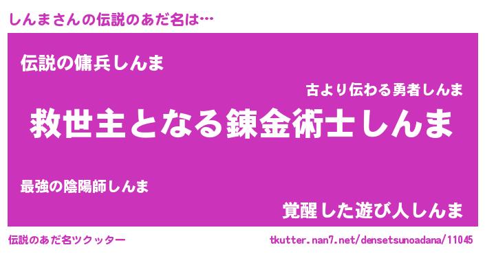 | 男性向けラノベタイトル風あだ名 | 『この素晴らしい世界にしんまを!』 |
