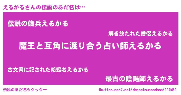 | 女子向けラノベタイトル風あだ名 | 『えるかる恋絵巻』『えるかる伯爵の花嫁』 |