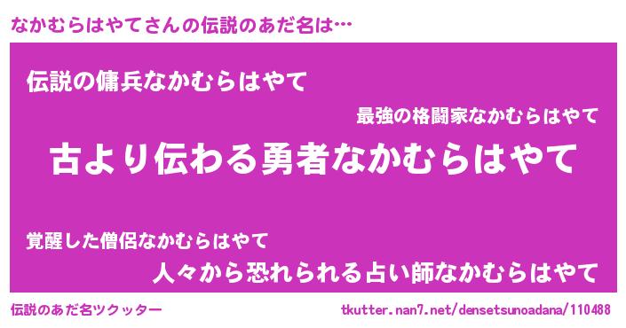 | 胡散臭い通販商品みたいなあだ名 | 『来世でも幸せになれる水素水…その名も「なかむらはやて」』 |