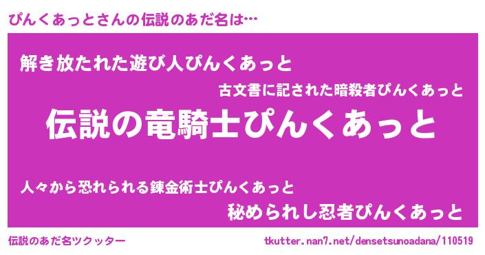 | 胡散臭い通販商品みたいなあだ名 | 『必ず成功するブレスレット…その名も「ぴんくあっと」』 |