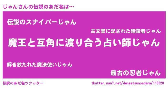| ヒーロー風カッコイイあだ名 | 『慈愛の使者じゃん』『超時空戦士ジャン』 |