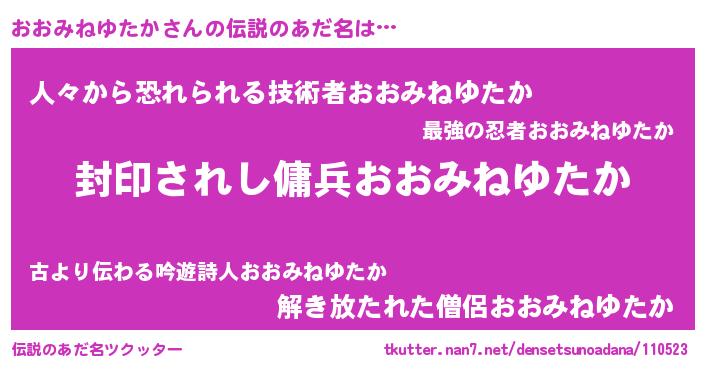 | ヒーロー風カッコイイあだ名 | 『スーパーオオミネユタカ』 |