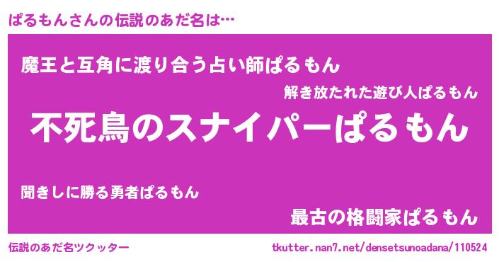 | 男性向けラノベタイトル風あだ名 | 『転生したらぱるもんだった件』 |