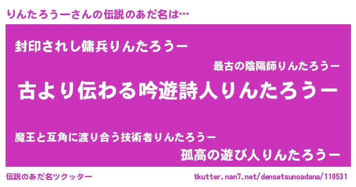 | 意味不明あだ名 | 『永久保存りんたろうー』 |