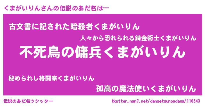| 胡散臭い通販商品みたいなあだ名 | 『モテモテ間違いなし水晶球…その名も「くまがいりん」』 |