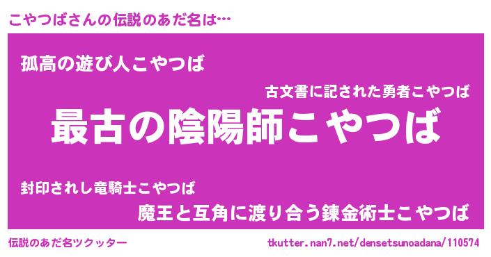 | 意味不明あだ名 | 『こやつばフォーエバー』『自称こやつば』 |