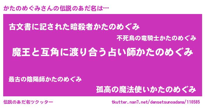 | 女子向けラノベタイトル風あだ名 | 『かたのめぐみ恋絵巻』 |