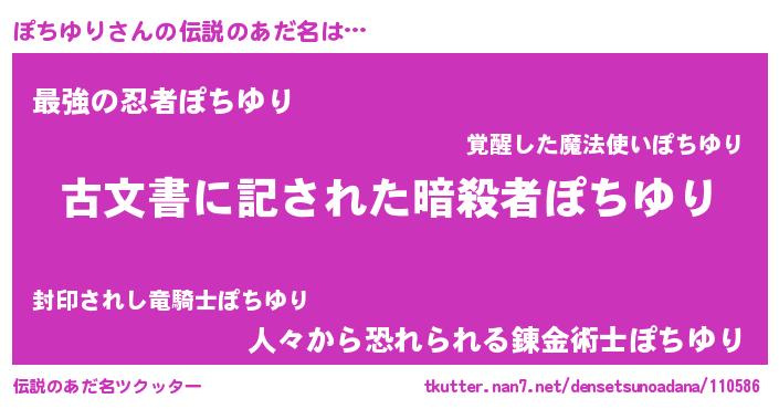 | ヒーロー風カッコイイあだ名 | 『ネオポチユリ』『ウルトラぽちゆりマン』 |
