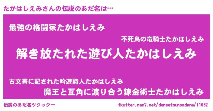 | ヒーロー風カッコイイあだ名 | 『魔戒騎士タカ』『愛の使者たかはしえみ』 |