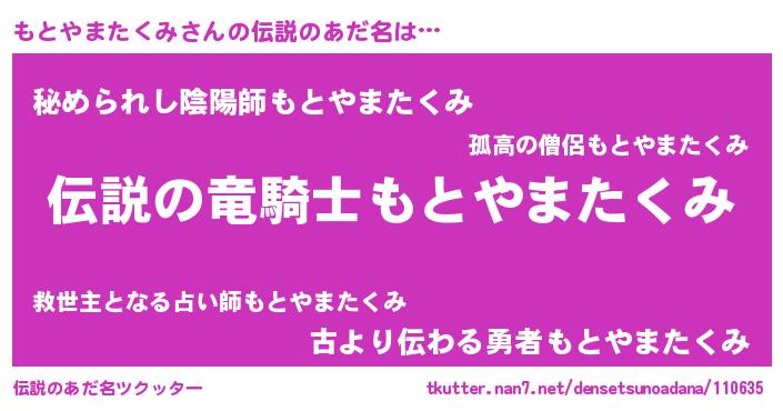 もとやまたくみさんの伝説のあだ名をツクッター!