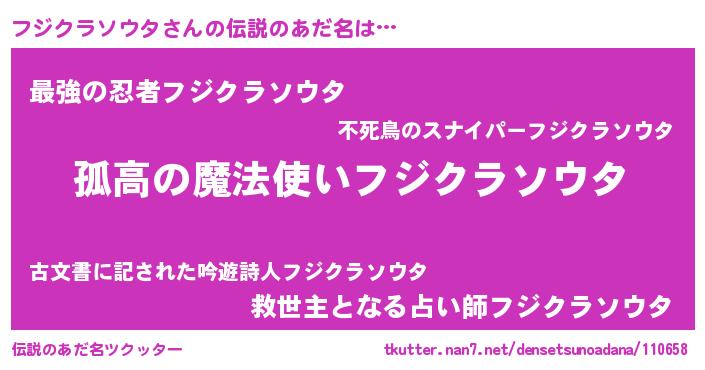 | 欧米人風あだ名 | 『アンジェラ・フジクラソウタ』 |