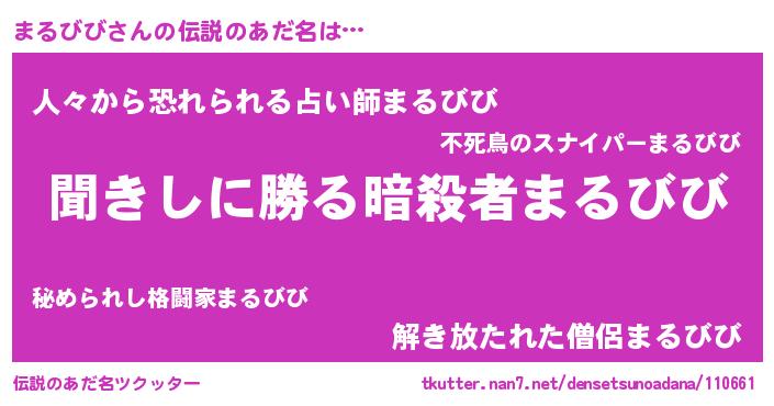 | 意味不明あだ名 | 『自称まるびび』『永久保存まるびび』 |
