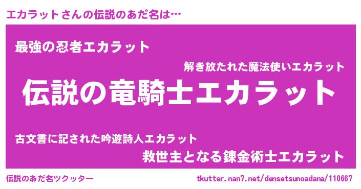 | 男性向けラノベタイトル風あだ名 | 『エカラットの憂鬱』 |