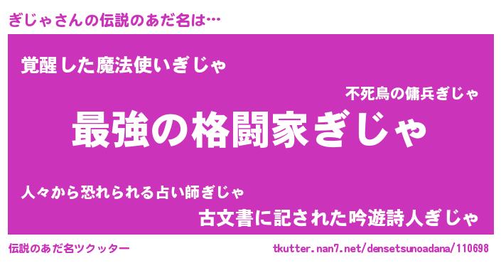 | ファンタジー風あだ名 | 『エターナルギジャー』『ゼギジトゥ』 |
