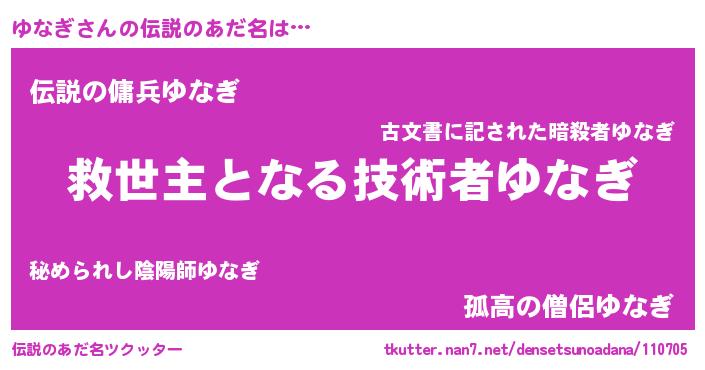 | 意味不明あだ名 | 『自称ゆなぎ』『眠気覚ましガムゆなぎ味』 |