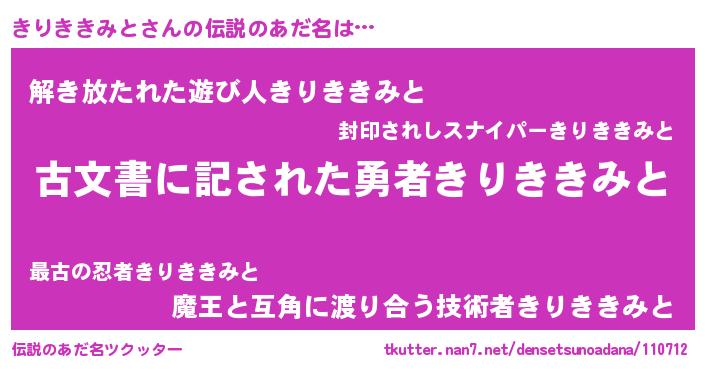 | ヒーロー風カッコイイあだ名 | 『ネオキリキキミト』『天弓騎士キリ』 |