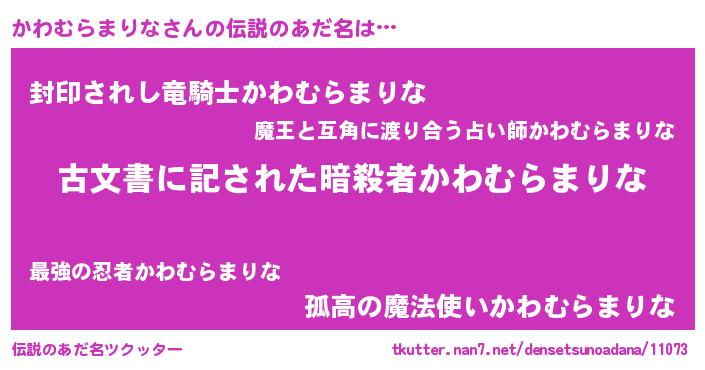 | 意味不明あだ名 | 『永久保存かわむらまりな』 |