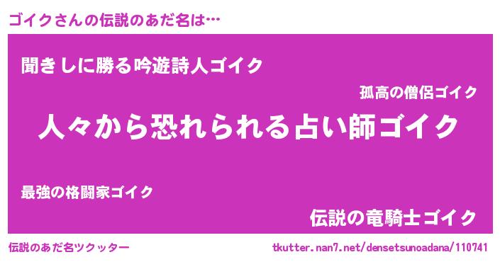 | ヒーロー風カッコイイあだ名 | 『友情の使者ゴイク』『ネオゴイク』 |