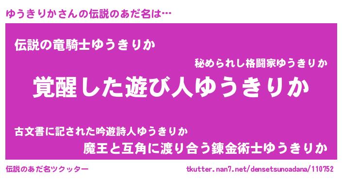 | 男性向けラノベタイトル風あだ名 | 『ゆうきりかに滅ぼされるだけの簡単なお仕事です』 |