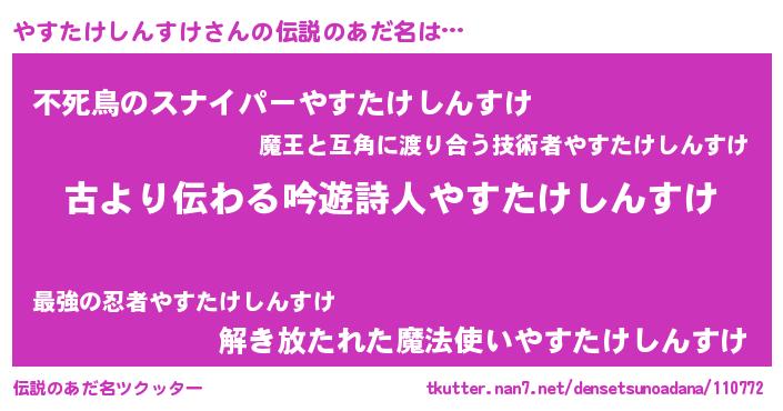 | ヘコむあだ名 | 『やすたけしんすけ(笑)』『やすっふぃ~』 |