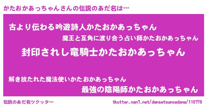 | 男性向けラノベタイトル風あだ名 | 『カタオカアッチャンアートオンライン』 |