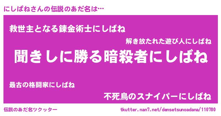 | ヒーロー風カッコイイあだ名 | 『ネオニシバネ』『慈愛の使者にしばね』 |