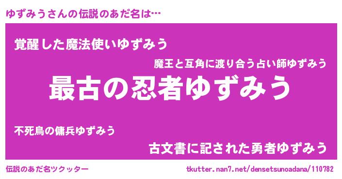| ヒーロー風カッコイイあだ名 | 『サイバー戦士ユズミウ』『黄金騎士ユズ』 |