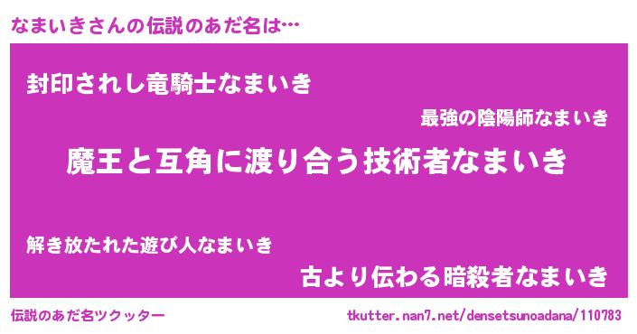 | ヒーロー風カッコイイあだ名 | 『友情の使者なまいき』『仮面ナマダー』 |