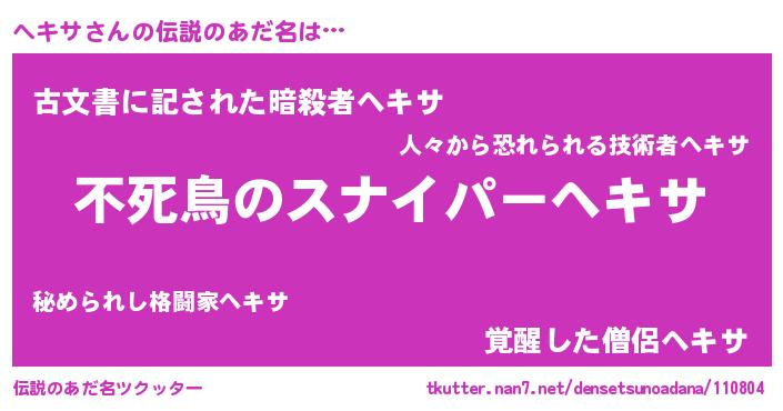 | 胡散臭い通販商品みたいなあだ名 | 『モテモテ間違いなし霊験あらたかなお札…その名も「ヘキサ」』 |