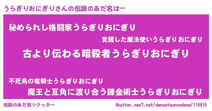| 意味不明あだ名 | 『永久保存うらぎりおにぎり』 |