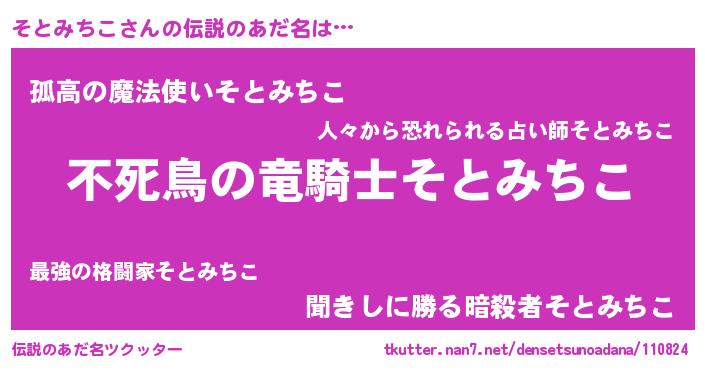 | 男性向けラノベタイトル風あだ名 | 『転生したらそとみちこだった件』 |