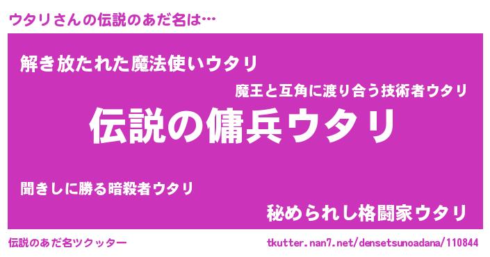 | ヘコむあだ名 | 『ウタにゅー』『ウタお』『豆乳』 |
