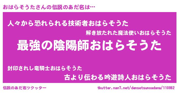 | 男性向けラノベタイトル風あだ名 | 『この素晴らしい世界におはらそうたを!』 |