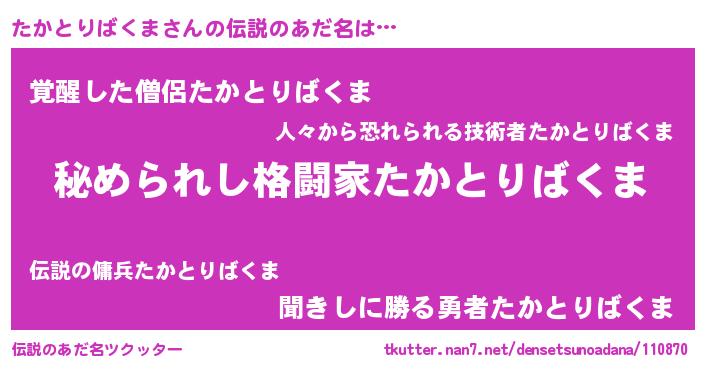| 肩書あだ名 | 『たかとりばくまマネージャー』 |
