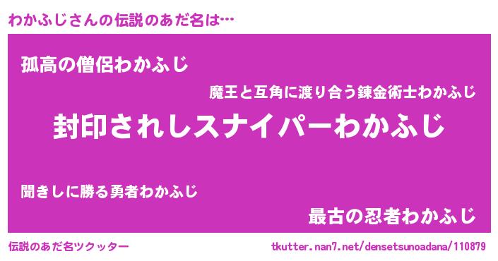 | 男性向けラノベタイトル風あだ名 | 『Re:わかふじから始める異世界生活』 |