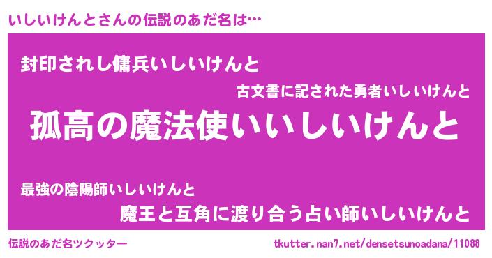 | 意味不明あだ名 | 『とにかく怪しいいしいけんと』 |